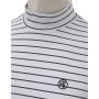 Áo được cách điệu phần cổ áo cao giúp người mặc nhìn thanh thoát hơn. Phần họa tiết dạng sọc đơn điệu phối màu phía sau tạo cảm giác gọn gàng và tôn lên các đường nét cơ thể.