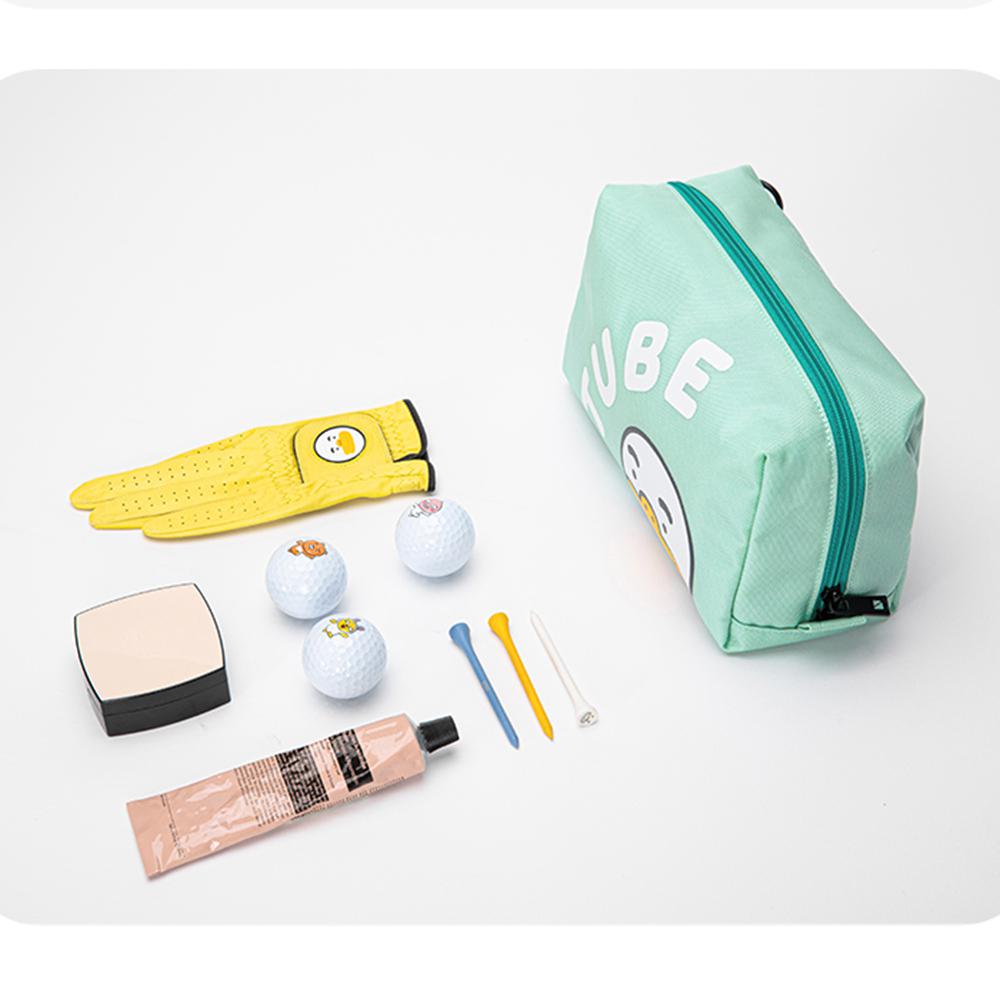 Túi golf cầm tay Kakao Friend Tube với màu xanh bạc hà mát mẻ, tươi tắn được in hình vịt Tube đáng yêu sắc nét, dây kéo mượt mà, chắc chắn cùng ngăn chứa đồ tiện dụng là lựa chọn tốt nhất cho những golfer trẻ yêu thích sự tiện lợi và đáng yêu.