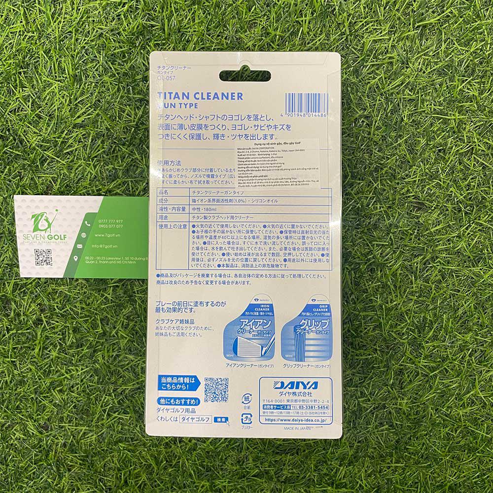 Bình xịt vệ sinh gậy golf Titanium Cleaner Gun Type OL-057 đến từ thương hiệu golf Daiya là sản phẩm dùng để vệ sinh, đánh bóng chuyên dụng dùng cho gậy golf Driver và gậy golf gỗ các loại.