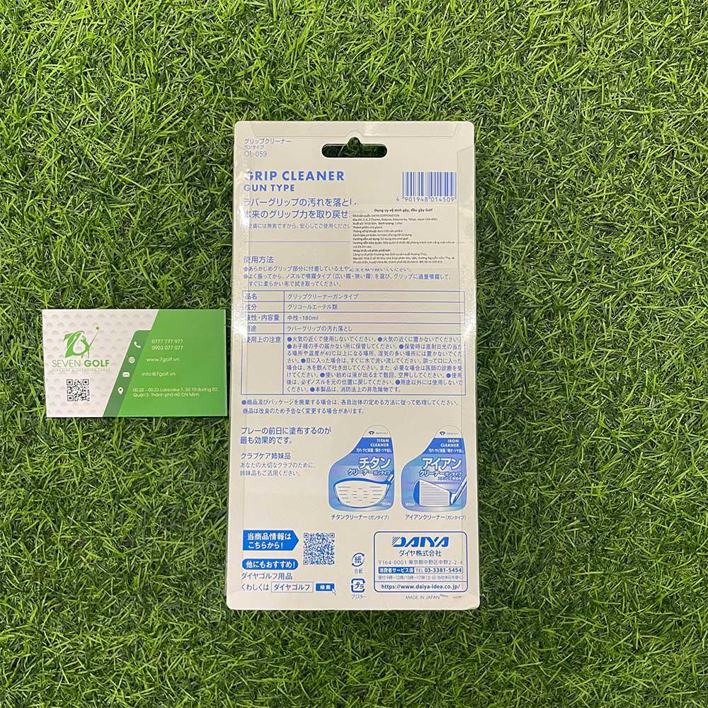 Bình xịt vệ sinh grip gậy golf Cleaner Gun Type OL-059 đến từ thương hiệu golf Daiya là dung dịch vệ sinh chuyên dụng dùng cho Grip gậy golf. Là phụ kiện golf thể tiện lợi và dễ dàng sử dụng cho các golfer.