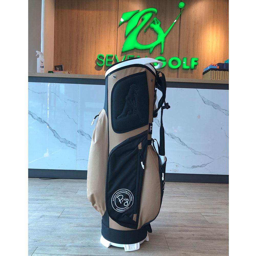 Túi golf Ping là sản phẩm túi đựng gậy golf pha trộn nhiều màu sắc tinh tế, lạ mắt. Túi có màu nâu be lịch lãm, phong độ nhưng trẻ trung với các đường may tỉ mỉ, chắc chắn cùng khóa kéo linh hoạt, trơn tru. Nhãn hàng còn tinh tế khi thiêt kế thêm các ngăn nhỏ tiện dụng cho việc đựng các vật dụng linh tinh.